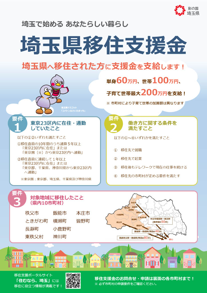 ※ 18歳未満の世帯員を帯同して移住した場合は130万円(令和4年4月1日以降に対象地域に移住した方が対象)